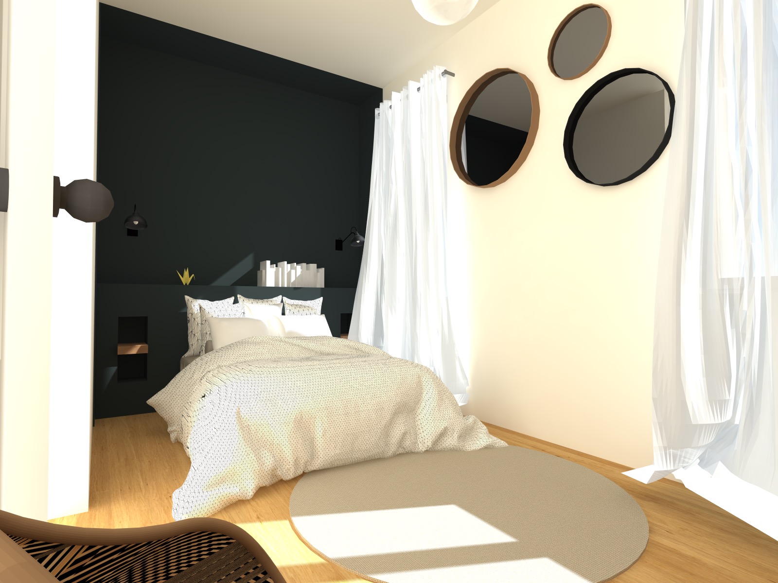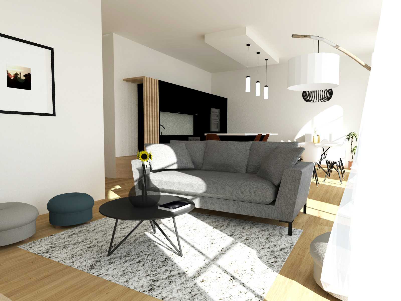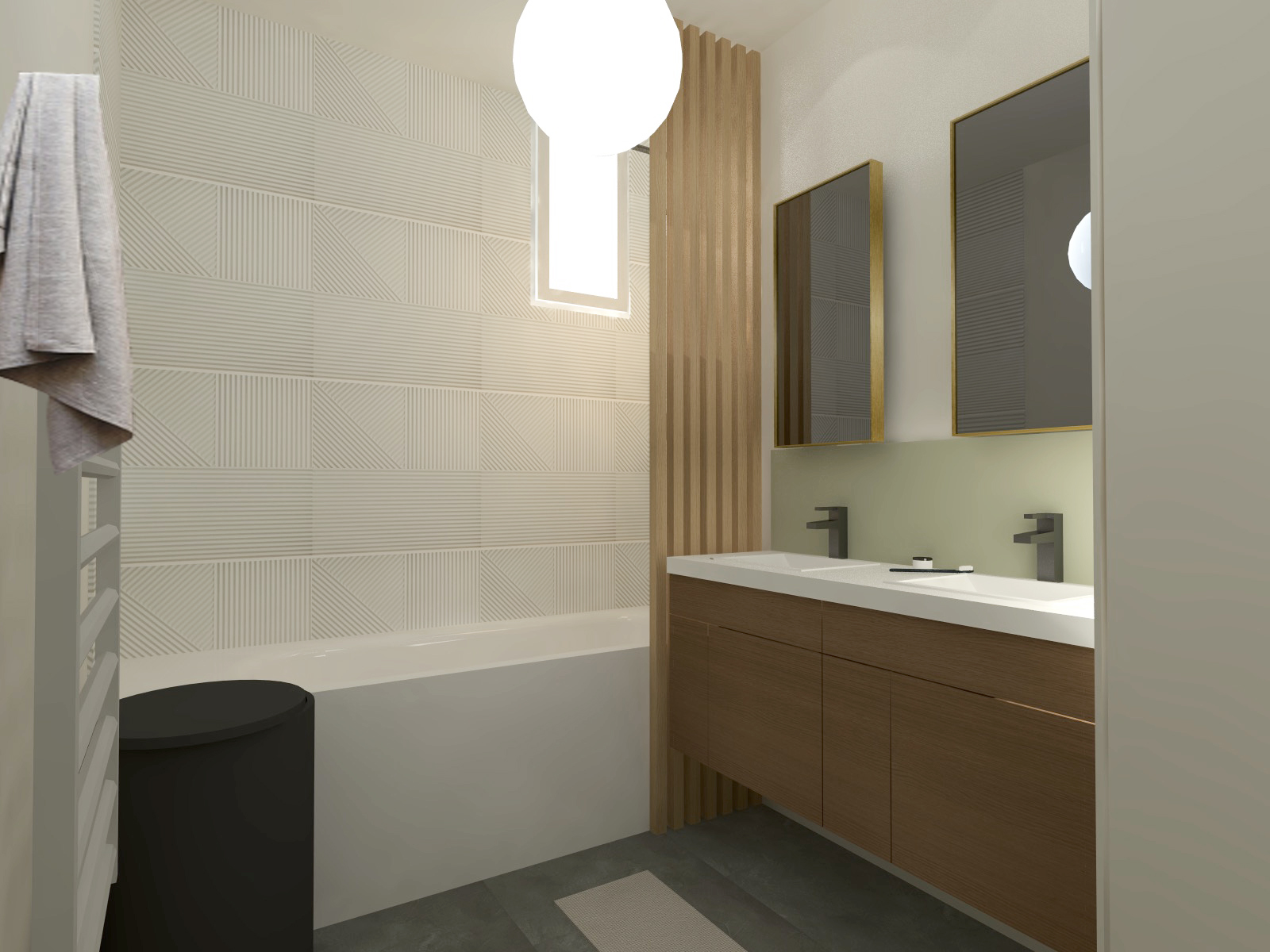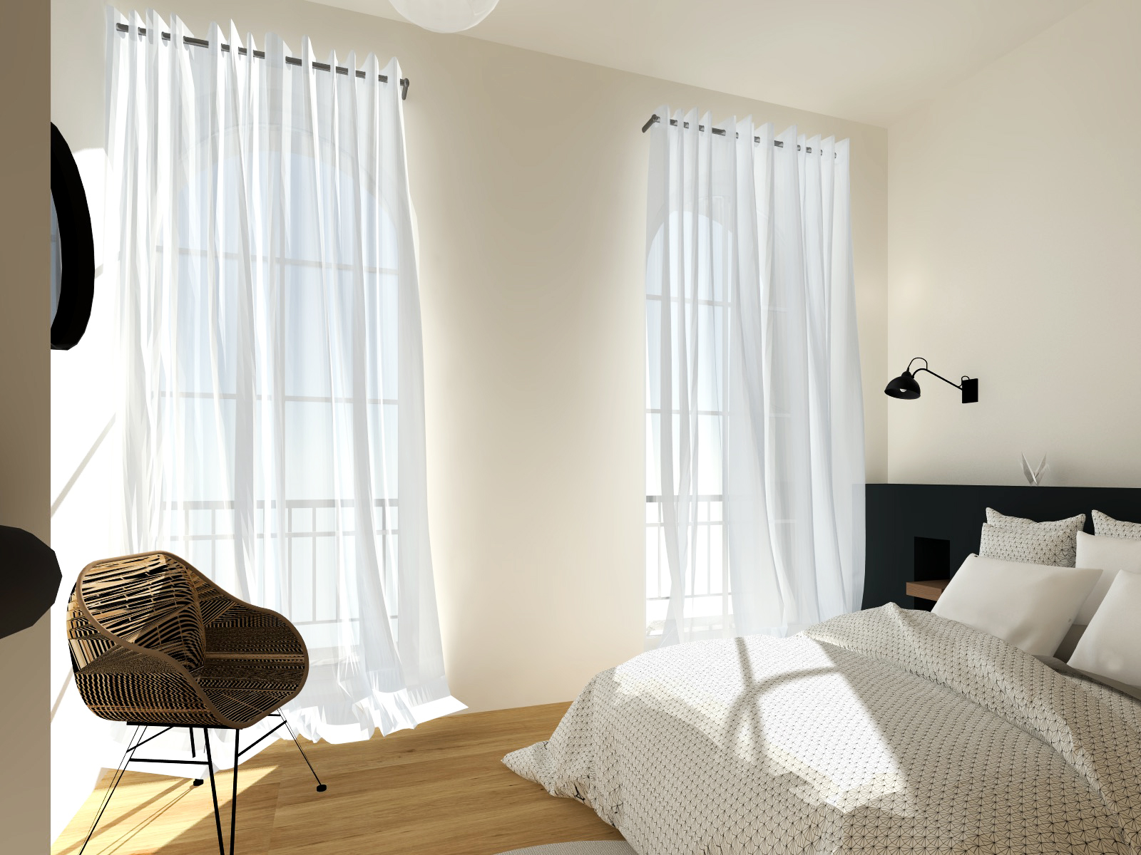 Le projet consiste en la modification de la distribution et des pièces de l’appartement : au sud, les pièces de vie et au nord l’espace nuit. L’entrée est étudiée comme une pièce à part entière, point central du logement et zone charnière.