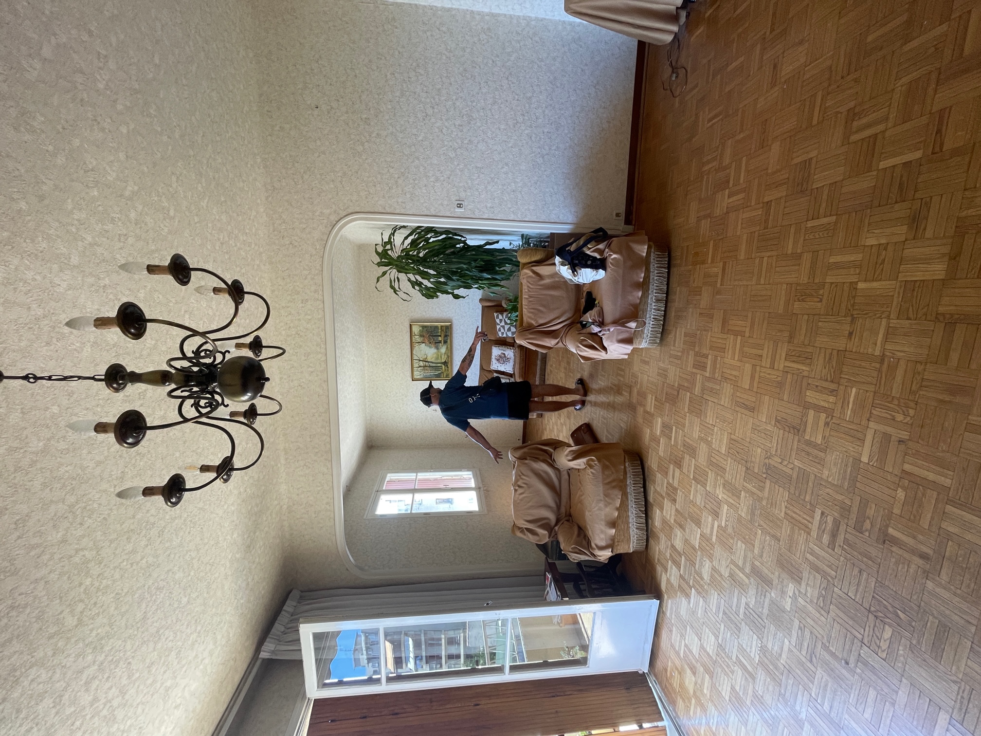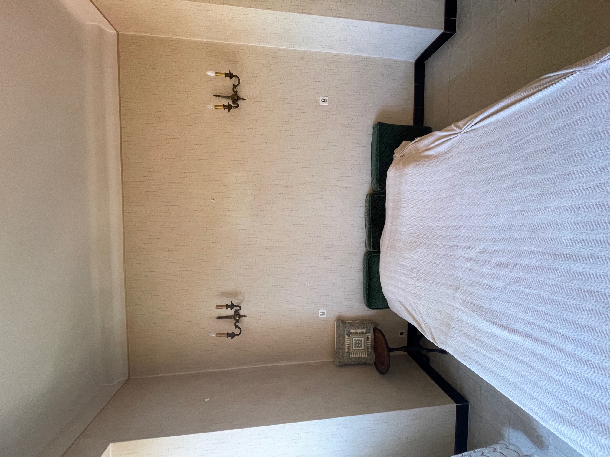 La totalité de la tapisserie (murs et plafonds) a été déposée, l’électricité a été entièrement refaite, les murs et plafonds ont été ratissés ou doublés, un carrelage type ciment a été mis en place dans les zones d’eau. Les peintures, minutieusement choisies, ont été entièrement refaites, et chaque pièce a été meublée avec soin.