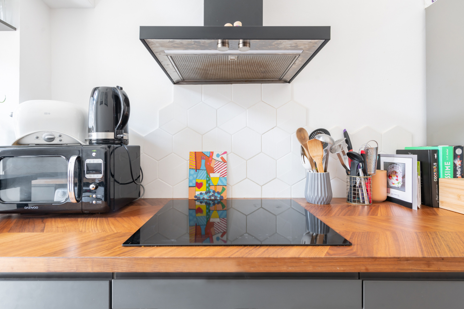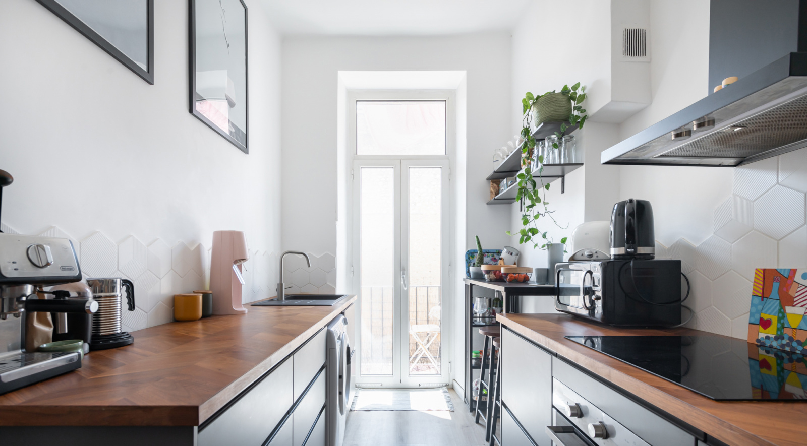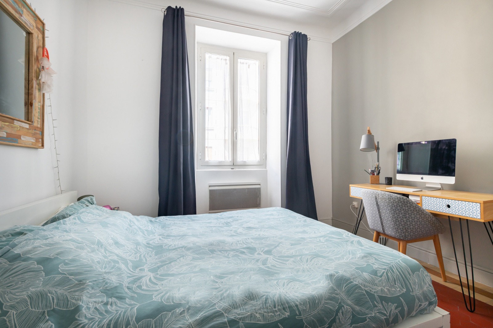 Ce petit appartement de style Art Déco des années 1920 était dans son jus : vieux mobilier, de petits espaces cloisonnés, des tomettes en état moyen au sol, des sanitaires vétustes. Cependant, la hauteur sous plafond, les volumes, la luminosité et les moulures ont permis d’imaginer un appartement cosy, fonctionnel et très agréable à vivre, en respectant l’histoire des lieux.