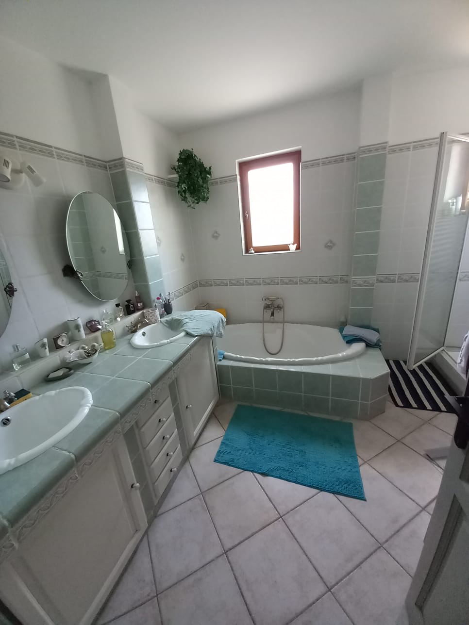 Cette salle de bain n’avait pas été rafraîchie depuis la construction de la villa datant d’il y a environ 30 ans. Les clients souhaitaient une remise au goût du jour, la suppression de la baignoire et la mise en place de nombreux rangements.